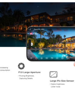 Channel 2 (Fixed Lens): 2.8 mmMax. Aperture F1.0 Field of View Channel 1 (PT Lens): H: 52°; V: 29°; D: 60°