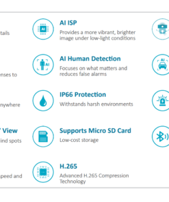 Max.: 9.8 W (12 VDC); 11.1W (PoE) (intelligence on + WDR + illuminator on + PT rotation + speaker on)Operating Temperature –30 °C to +50 °C (–22 °F to +122 °F) Operating Humidity ≤95% Protection IP66 Camera Button Reset button Casing Material Plastic Product Dimensions 159.4 mm × 119.1 mm × 210 mm (6.28″ × 4.69″ × 8.27″) (L × W × H) Net Weight 585 g (1.29 lb) - Dahua P3D-3F-PV-P Data Sheet